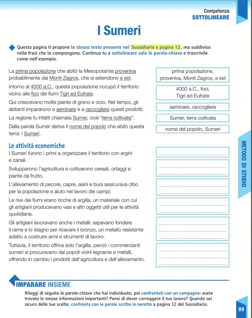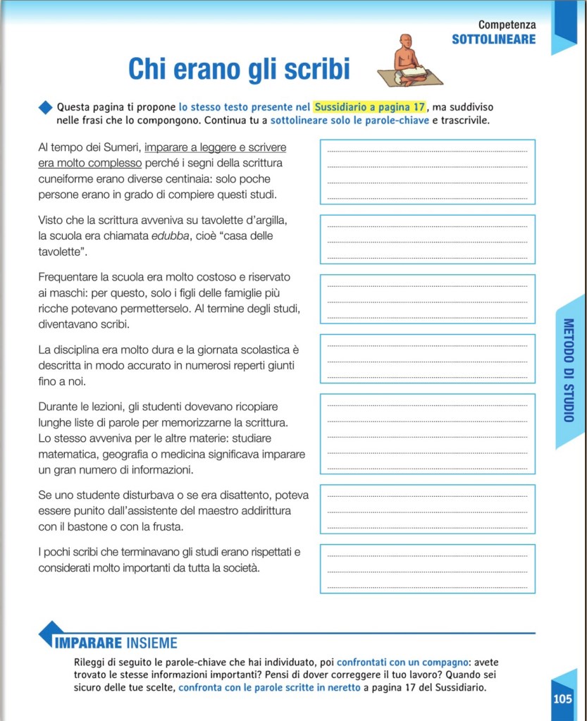 Un approccio graduale, ricorsivo, molto operativo e ben strutturato che prende per mano le bambine e i bambini proponendo loro un approccio alle diverse modalità (visuale, testuale, per blocchi…) di lavoro sui testi per costruire un metodo di studio solido ed efficace