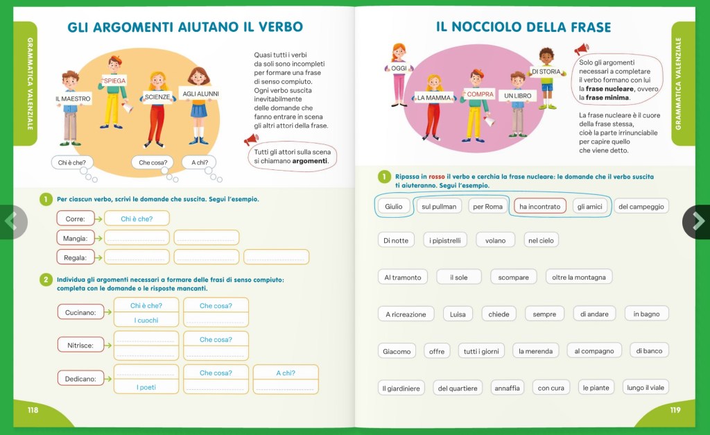 ⁃ GRAMMATICA classe quarta TANTE VOCI (con il bel capito finale del dedicato alla GRAMMATICA VALENZALE)