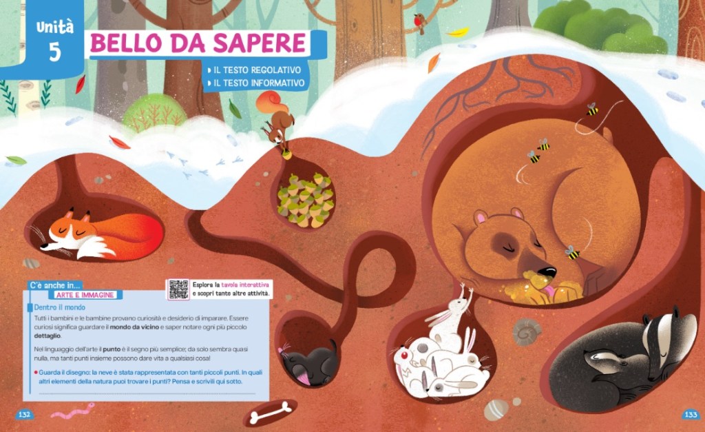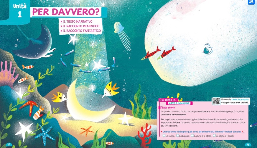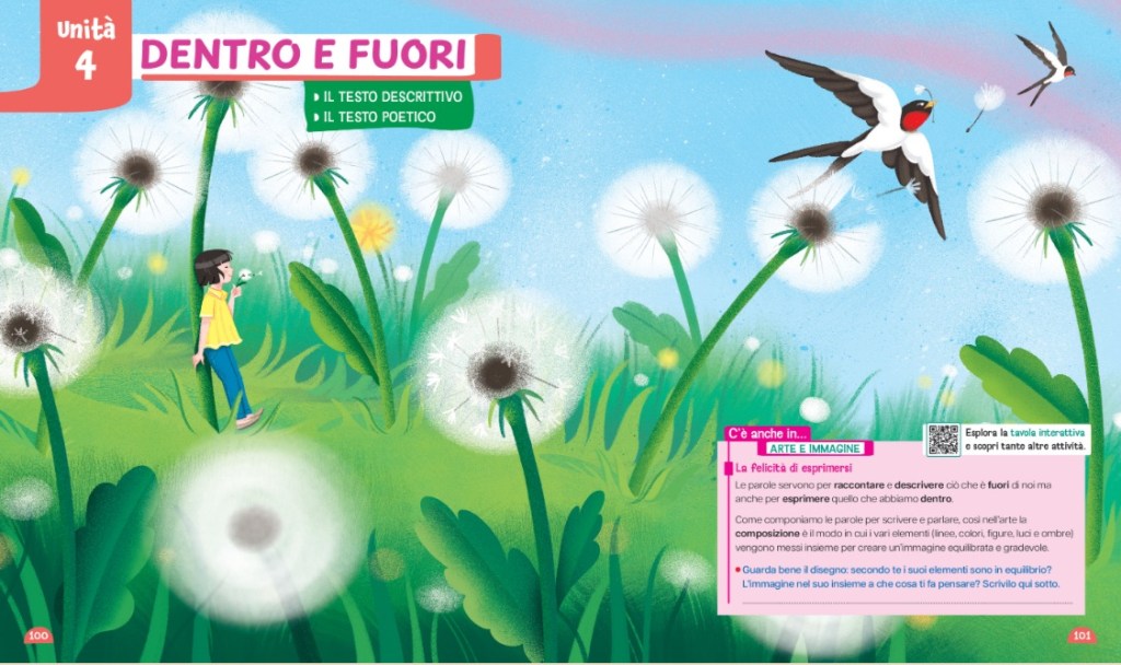 Ogni sezione del libro di letture si apre con una grande opera d’arte, da osservare su carta o esplorare sulla LIM.